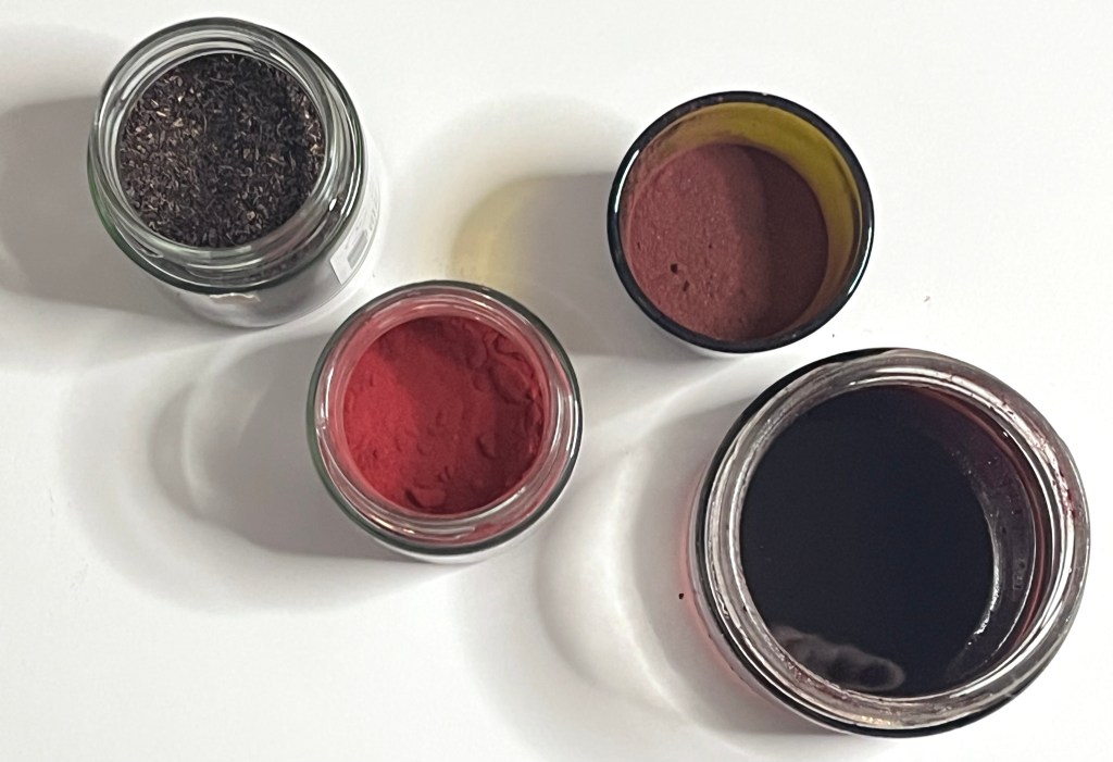 - Außerdem möchte ich rote Farbe durch Pflanzen-Pulver hinzufügen. Dies wird mittels eines “Mazerats” gemacht: Man setzt das Pulver mit einem Öl an, entweder warm (bis ca. 50 Grad) oder kalt. Die warme Methode ist nach ein paar Stunden fertig, die kalte Methode nach ein paar Wochen.