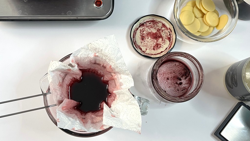 2. Am nächsten Tag filtere ich das Öl durch ein Küchenpapier und ein feinmaschiges Sieb.